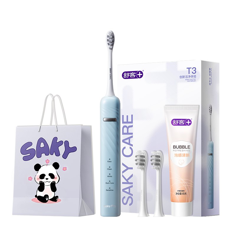舒客T3声波电动牙刷,净白柔护,5当清洁模式,IPX7级全身防水,智能电量提醒,性价比之选,三色可选!!