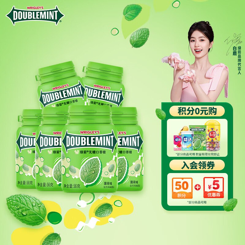 🎒 绿箭 无糖口香糖 薄荷味约40粒56g×6瓶 有4礼金15.5