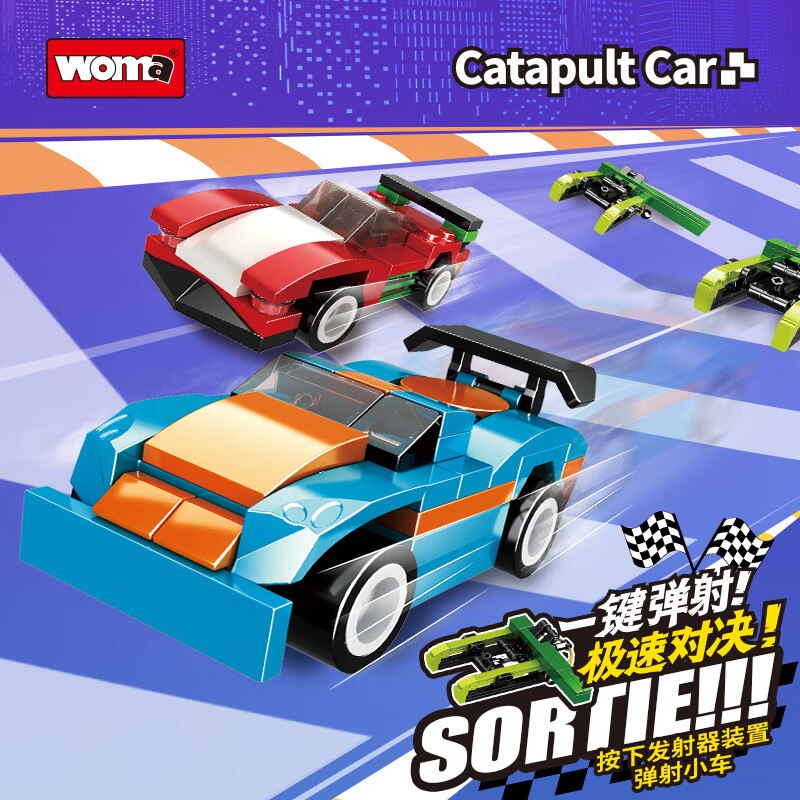 WOMA8盒跑车积木拼装玩具带发射器