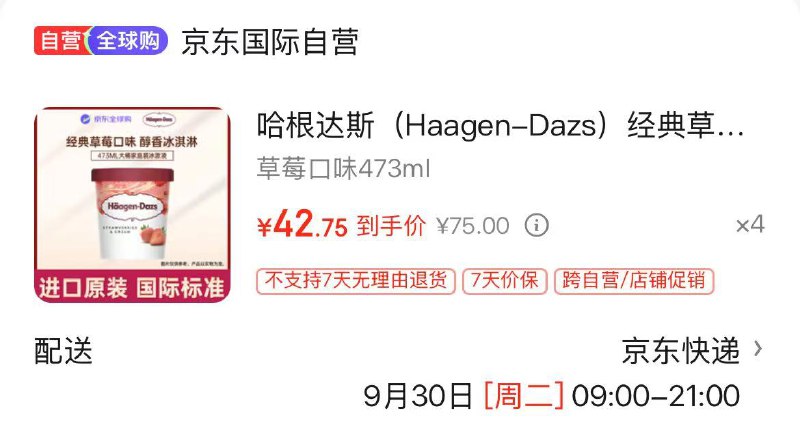 【自营】哈根达斯 冰淇淋大桶家庭装 473ml